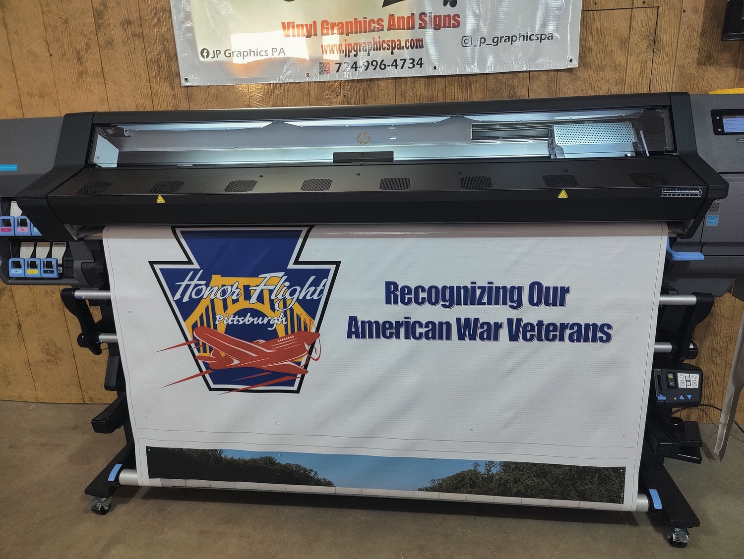 With a HP Latex wide format printer, we can print designs up to 64" wide. We can make stickers, banners, signs, vehicle decals and vehicle wraps all on this printer. This printer produces scratch resistant prints on a variety of substrates including vinyl, banner, canvis, and paper. Inks come out dry immediately so we can produce a finished product in as low as one business day. Prints can also be laminated to provide extra protection and longevity.