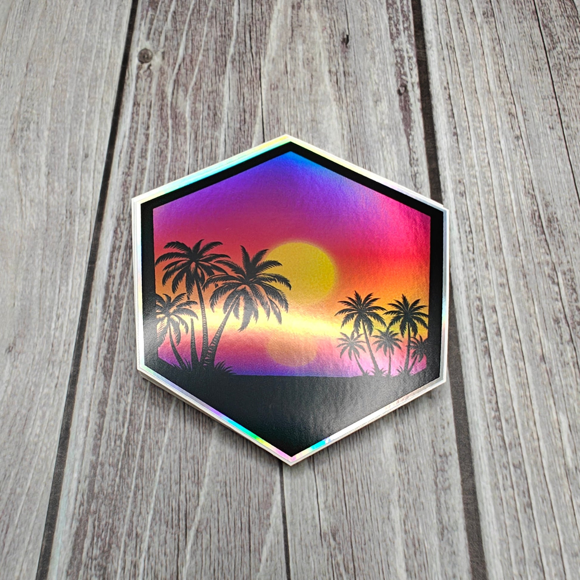 Palm Trees & Sunset Over Water 3" Holographic Sticker